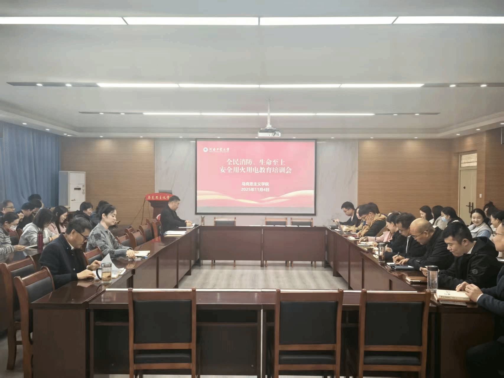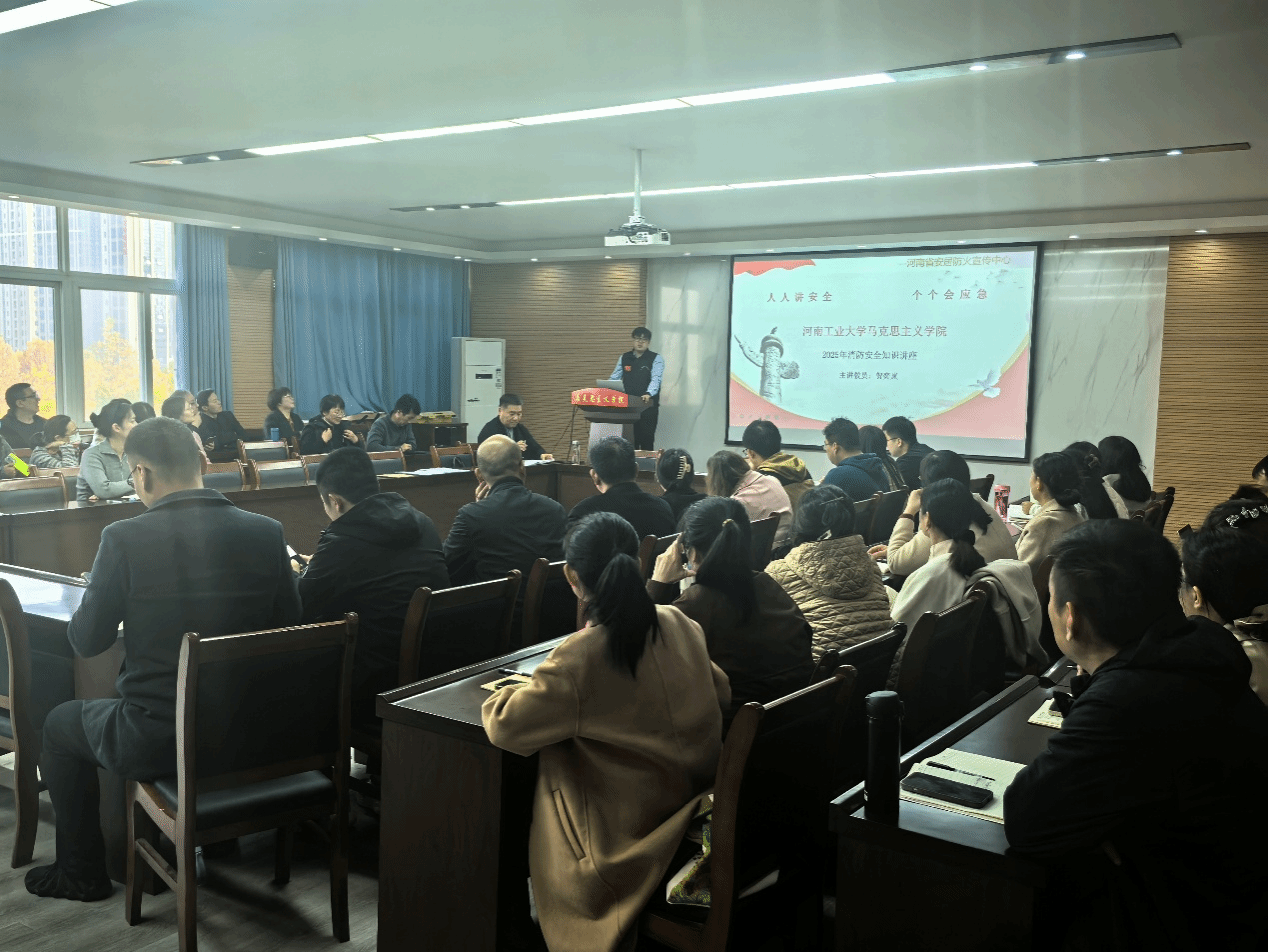 联合河南省安居防火宣传中心于3511会议室开展消防安全知识讲座,全体教职工和韩国av研究生代表参加,河南省安居防火宣传中心教员贺奕岚主讲。