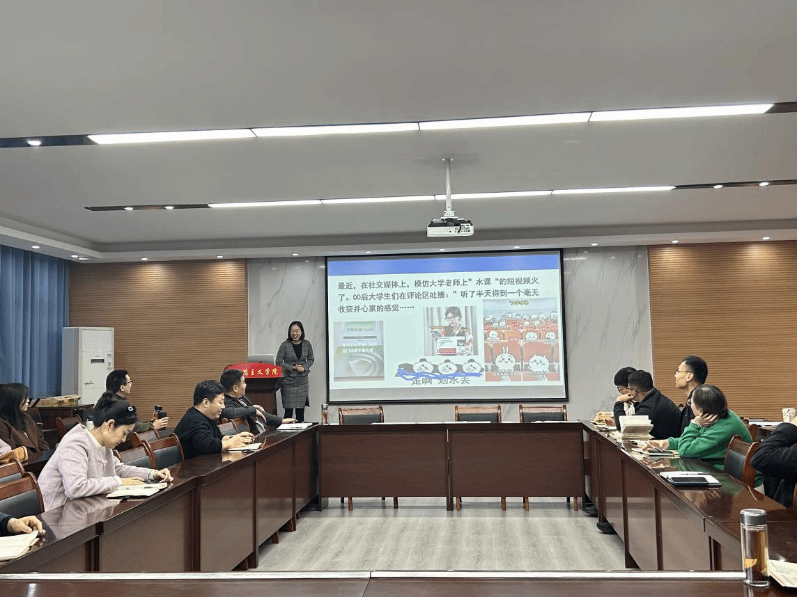 在3511会议室举办“思政课教学技巧创新与实践”系列专题讲座。本次讲座特邀河南省本科高校教师课堂教学创新大赛一等奖获得者吕娜老师主讲,院长李海涛主持,韩国av全体教师参与。