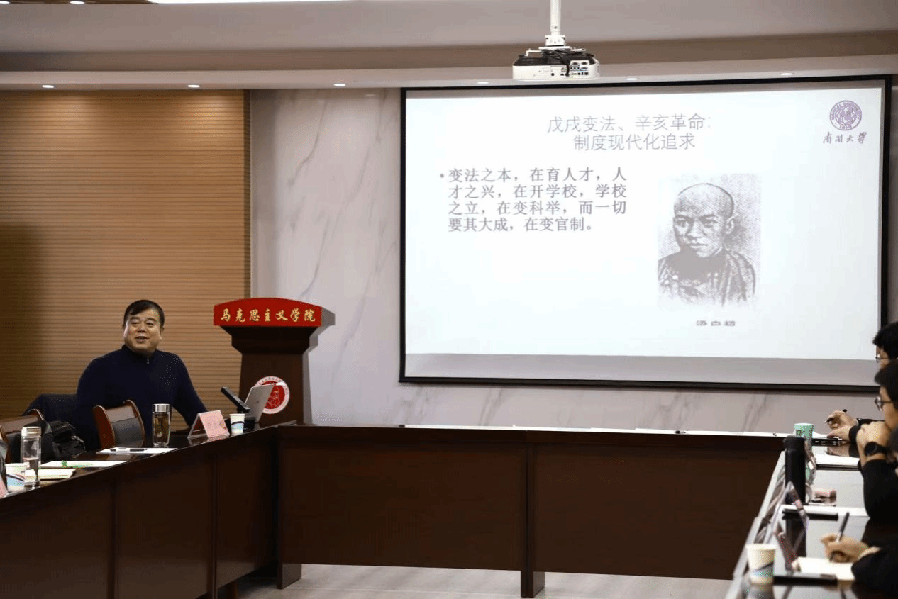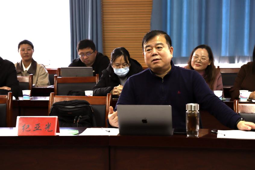 纪亚光教授受邀作“中国式现代化发生发展的历史逻辑及其特征”学术讲座。纪教授从效法欧美、以俄为师、中国特色三个阶段梳理中国式现代化探索历程,阐述了新时代中国式现代化的历史突破,重点阐释了中国式现代化发生发展的历史特征。纪教授强调:“中国式现代化植根于中华优秀传统文化,如‘民为邦本’与‘共同富裕’相通,‘天人合一’与‘绿色发展’契合,展现了‘集大成’的文明意涵。”他进一步指出,新时代背景下,中国式现代化需要以高质量发展做大“蛋糕”,通过三次分配、乡村振兴等举措达到共同富裕。
