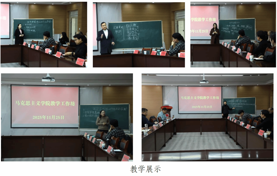 5名骨干教师围绕《马克思主义基本原理》《中国近现代史纲要》等核心课程,围绕“如何正确把握科学社会主义基本原则”“中国人民抗日战争胜利的意义”等专题,展开教学展示。