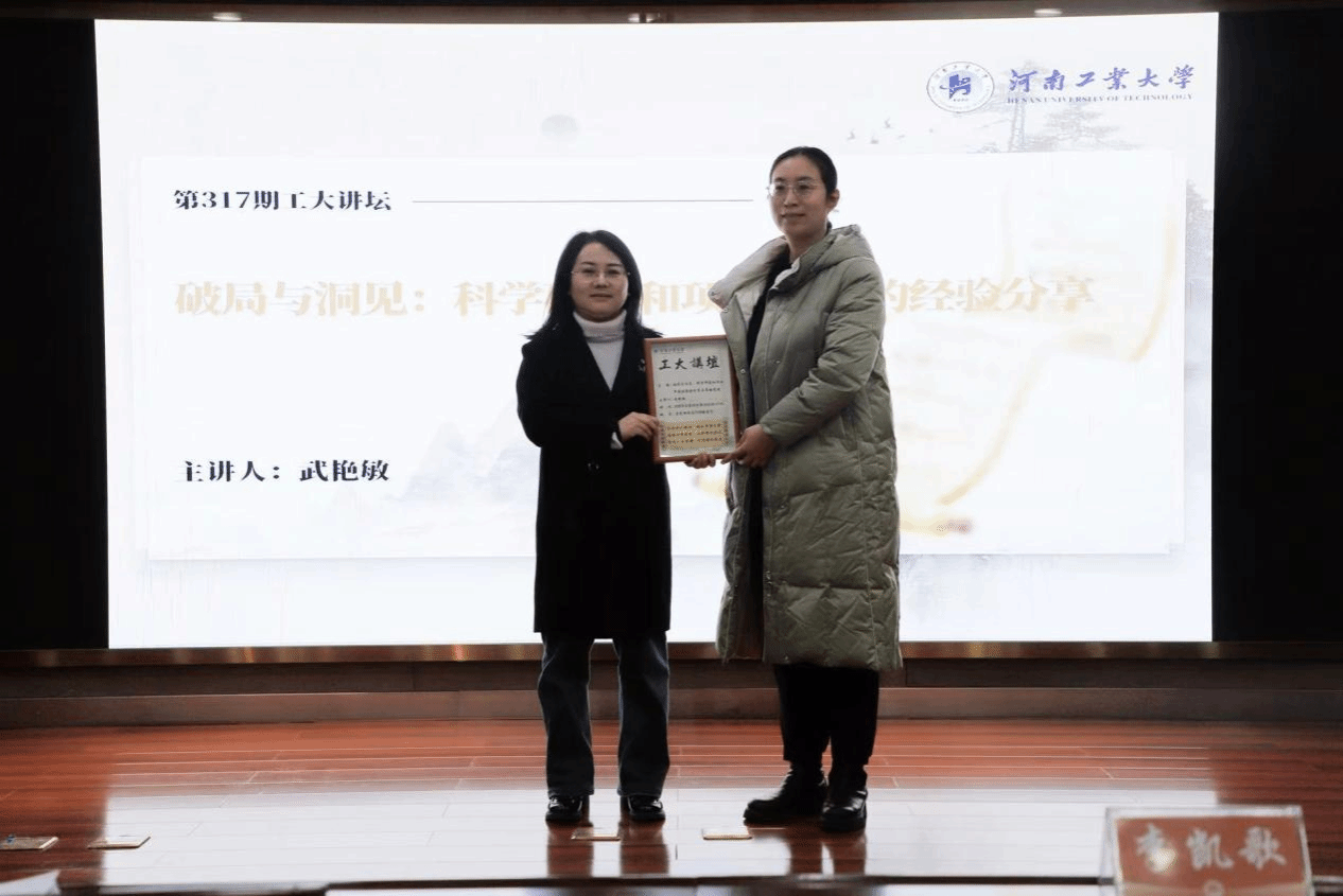报告结束后,校团委副书记李凯歌向武艳敏教授赠送“工大讲坛”纪念海报,武艳敏教授在“工大讲坛”纪念册上题写寄语。