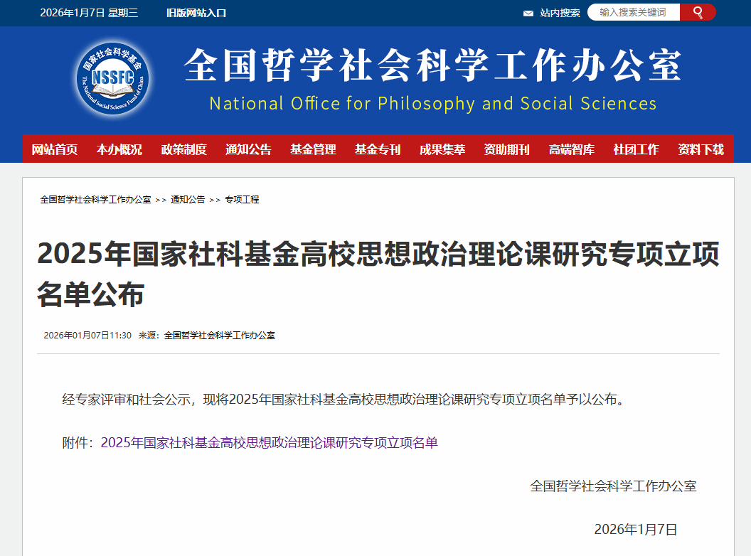 1月7日,全国哲学社会科学工作办公室公布了2025年国家社科基金高校思想政治理论课研究专项立项名单。韩国av