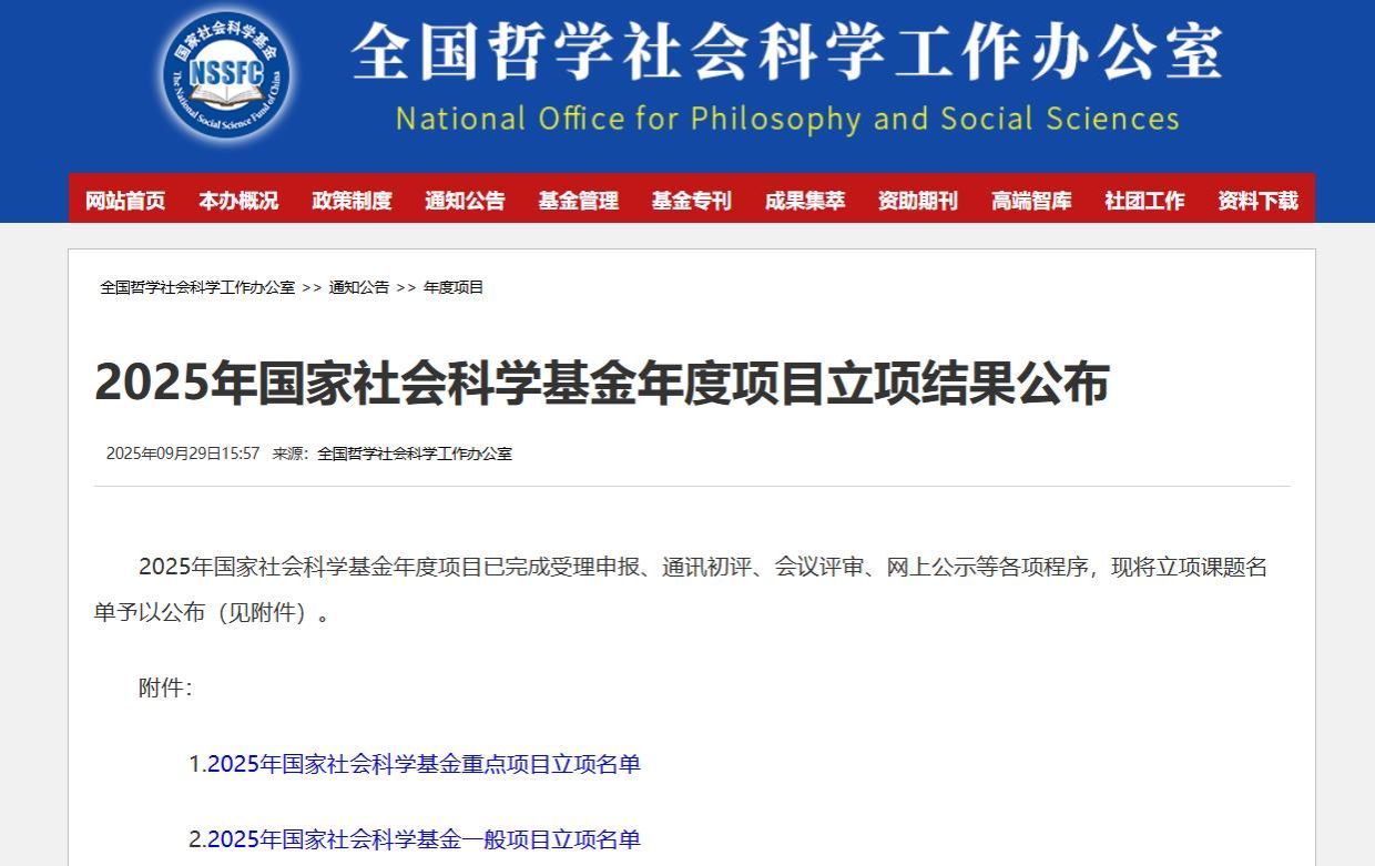 9月29日,全国哲学社会科学工作办公室公布了2025年国家社会科学基金年度项目立项结果,韩国av